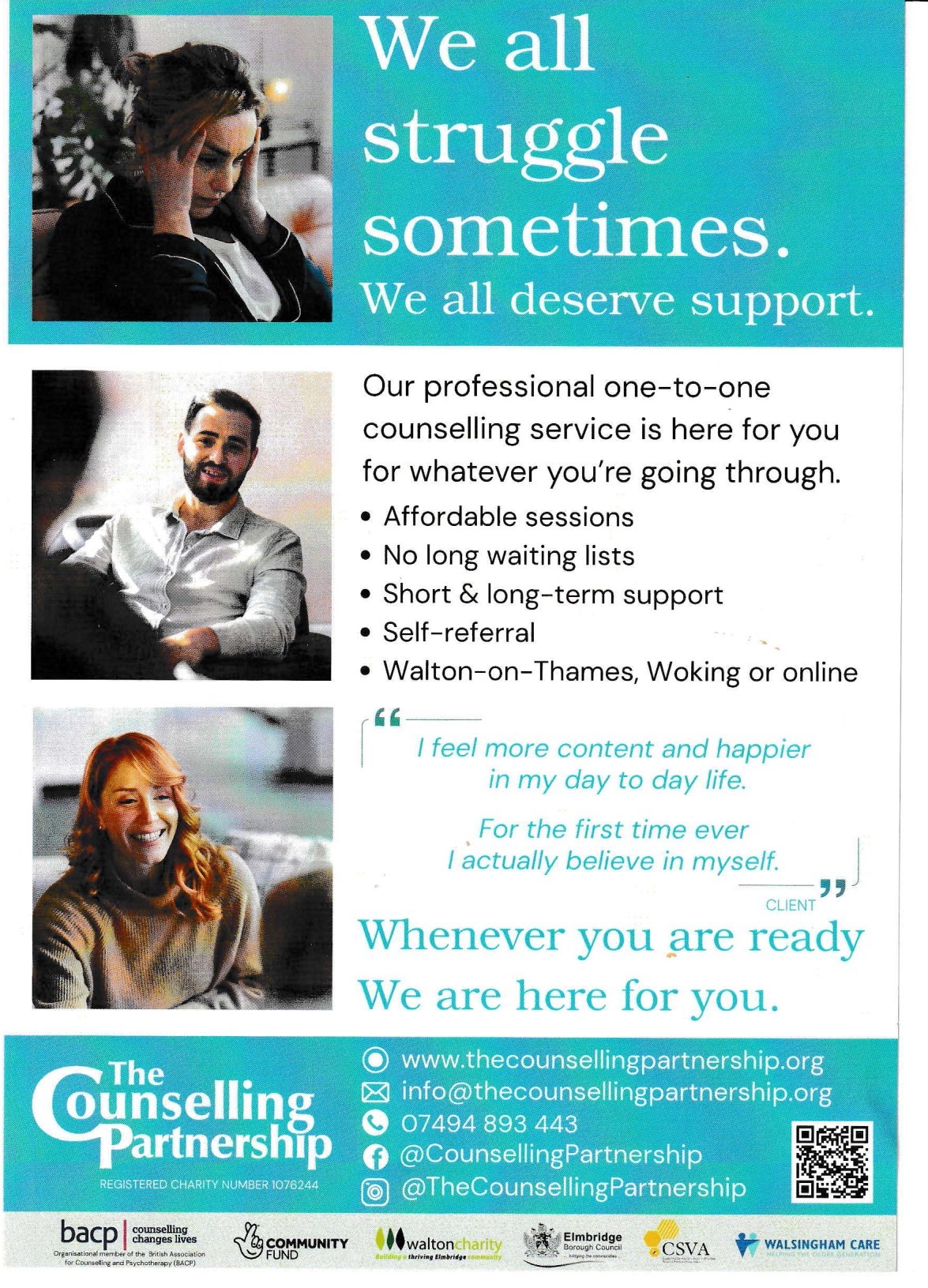 For more information please visit The Counselling Partnership Home – The Counselling Partnership